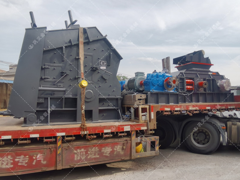 大型半自動(dòng)液壓對(duì)輥制砂機(jī)發(fā)往四川